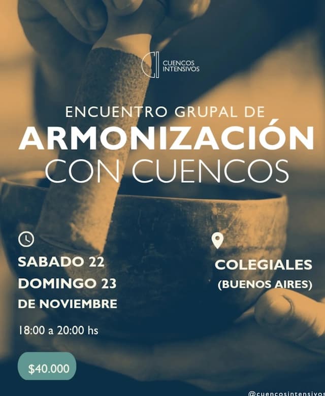Los CUENCOS producen sonidos armónicos que promueven efectos relajantes e inducen a una profunda serenidad en las personas. Finalizaremos el encuentro compartiendo tes para quien desee quedarse luego. 𝙇𝙖𝙨 𝘼𝙧𝙢𝙤𝙣𝙞𝙯𝙖𝙘𝙞𝙤𝙣𝙚𝙨 𝙜𝙧𝙪𝙥𝙖𝙡𝙚𝙨 𝙨𝙤𝙣 𝙪𝙣𝙖 𝙞𝙣𝙫𝙞𝙩𝙖𝙘𝙞ó𝙣 𝙖: 🧿 Bañarnos con los sonidos y las vibraciones de los cuencos tibetanos y cuencos de cuarzo, estimulando lo auditivo y […]