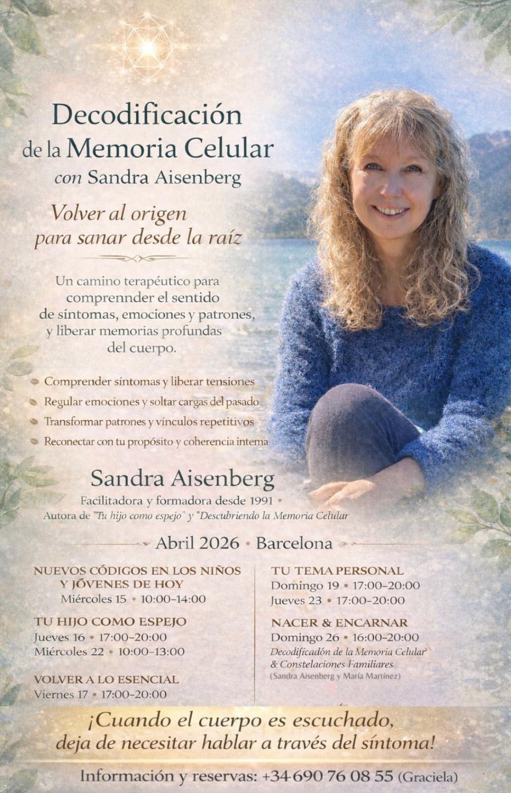 Abril 2026 | Barcelona Volver al origen para sanar desde la raíz. Un camino terapéutico para comprennder el sentido de sintomas, emociones y patrones, y liberar memorias profundas del cuerpo. […]